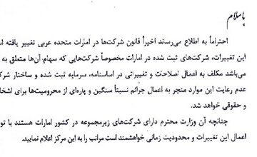 اعمال اصلاحات و تغییراتی در اساسنامه شرکت های ثبت شده در اماراتYasin۱۴۰۳-۰۳-۱۱برای مشاهده اطلاعیه کلیک نمایید. ... ادامه مطلب